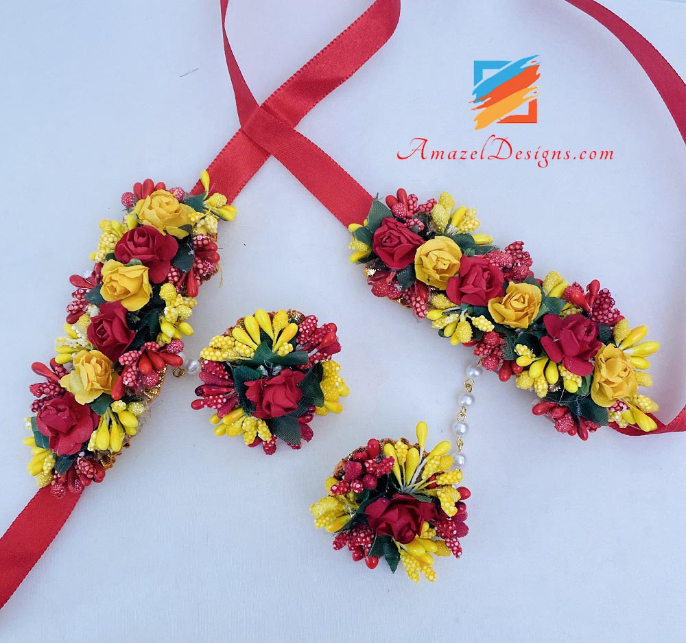 Girocollo Giallo Rosso Con Orecchini Lunghi Mala Tikka