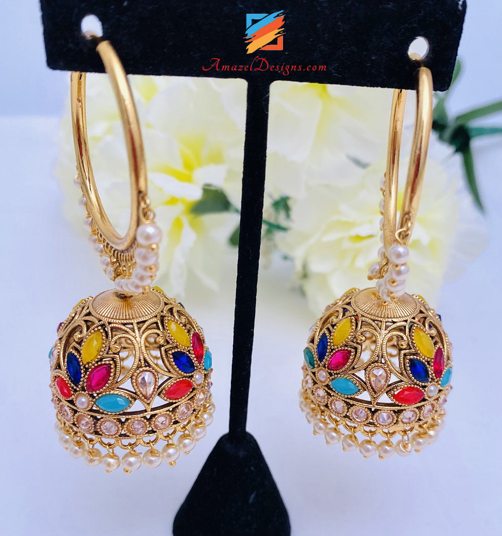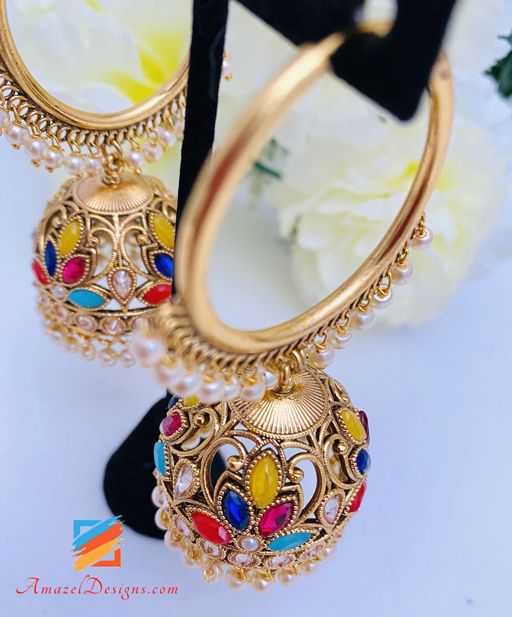 High Quality Polki Dull Gold Multicoloured Jhumki Valliyan.
