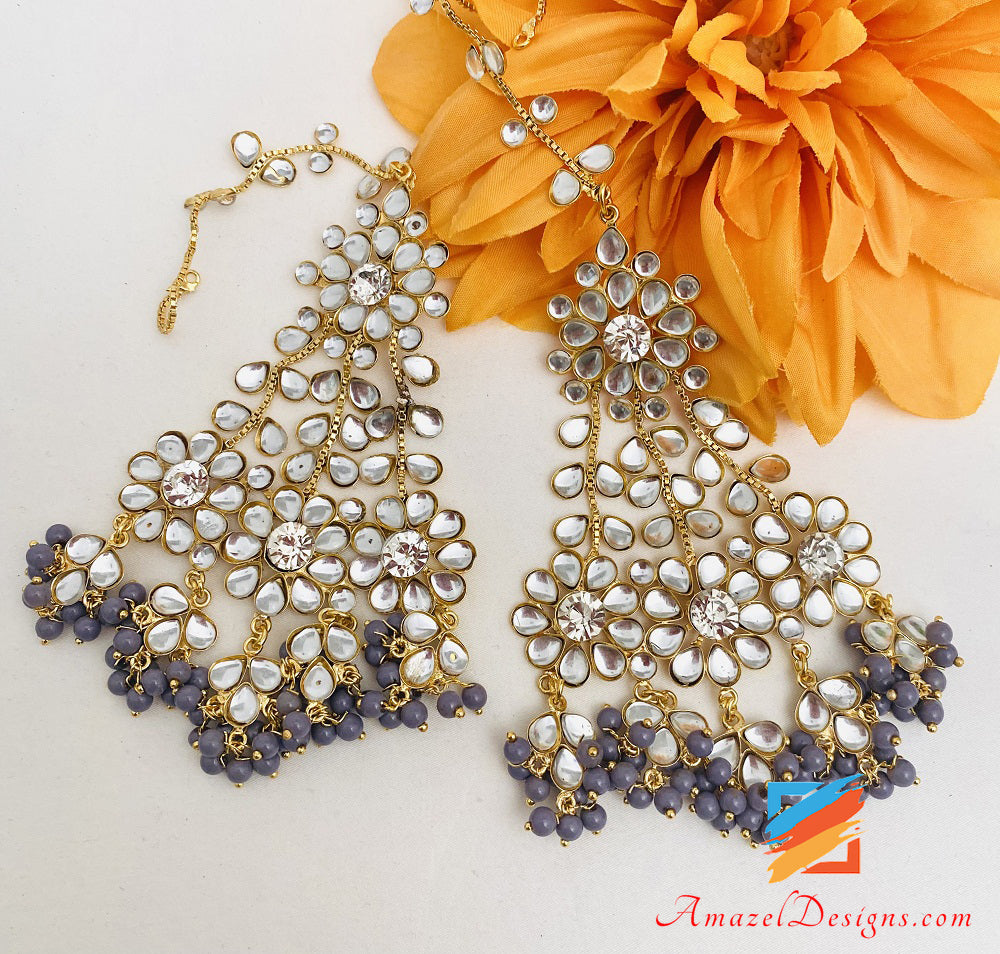 Kundan Crystal Lightweight Grey Flexible Choker Earrings Tikka Passa Set